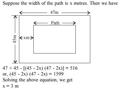 10. A path, all around the inside of a rectangular park 47 m by 45 m, occupies 516 sq m. What is the width of the path?