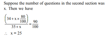 6. Birju solved 90 per cent of the questions in an examination correctly. In the first section he solved 34 questions correctly. In the second section he solved 80% questions correctly. What is the total number of questions in the second section if the first section consists of 35 questions? (Assume that the question paper consists of only two sections.)