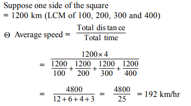 7. An aeroplane covers the four sides of a square field at speeds of 100, 200, 300 and 400 km per hour. Then the average speed of the plane in the entire journey is