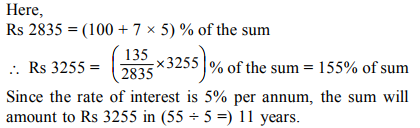 9. A certain sum of money amounts to Rs 2835 in 7 years at 5% per annum. In how many years will it amount to Rs 3255 at the same rate?
