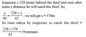 the thief. The inspector runs 42 meters and the thief runs 30 meters in a