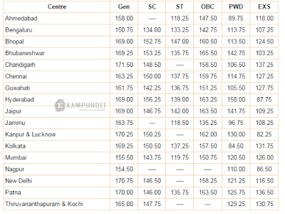 Cut off Marks of the provisionally selected candidates – Centre – wise- Assistant-2015