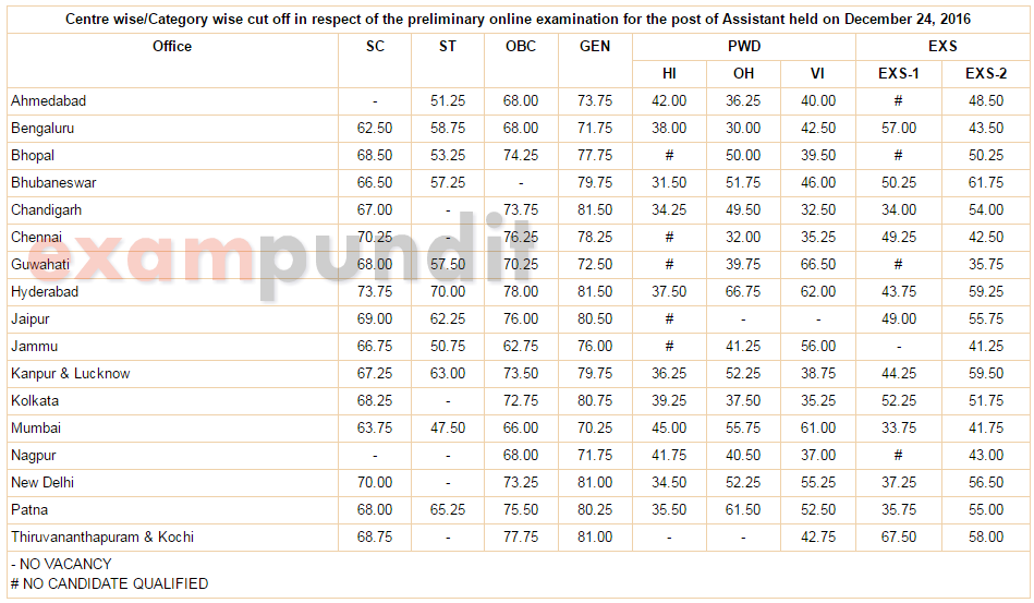 They have also released the cut-off marks statewise for the Prelims Examination.