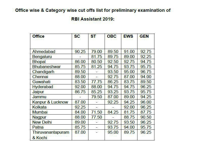 Dear Aspirants, Reserve Bank of India has conducted Assistant Prelims Examination 2020 on February 15th and 16th, 2020. As we all know recently RBI has declared the Assistant Prelims Result 2020. We have collected RBI Assistant Prelims Office wise and category wise Prelims Cutoff 2020 from one of our aspirants. Our aspirants gathered this through RTI process.