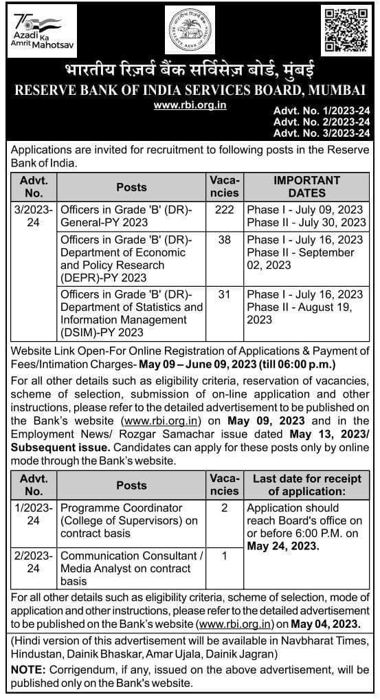 | Phase 2 (Paper 1, 2, 3) Online Exam for Officers in Grade B (DR) - General posts | 30th July 2023 |