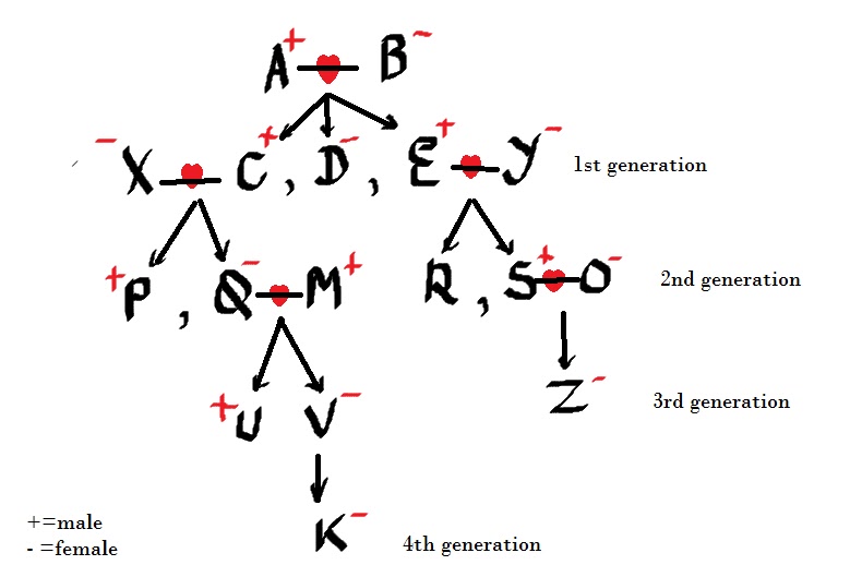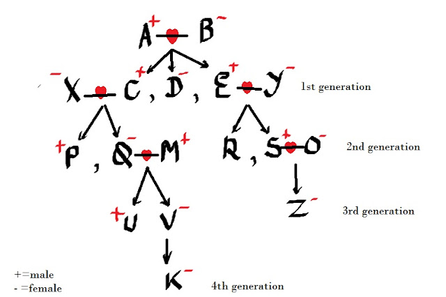 The grandchildren of A and B are P,Q,R and S. P is the male sibling of Q. Q is