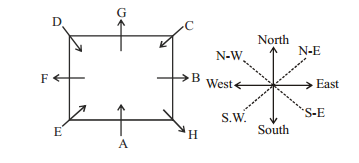 Eight persons A, B, C, D, E, F, G and H are sitting on a Square table. Four of them are looking towards centre of the table only. H and G are not looking towards centre of the table. Four of them are sitting at the corner of the table. Only one person at corner is opposite of the centre of the table. G is looking towards North and is between D and C. F is looking towards west and is left hand side of G. There is equal distance between two persons. D is looking towards East South. F is exactly between D and E. A is immediate right of E. B and H both are not looking towards centre. B is exactly between C and H. The two sides of square must be vertical lines.