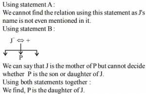 (B) P's mother is married to J's husband, who has one son and two daughters