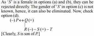 - If ‘A + B’ means ‘A is brother of B’, ‘A – B’ means ‘A is sister of B’, ‘A × B’ means ‘A is wife of B’, and ‘A ÷ B’ means ‘A is father of B’, then which of the following indicates ‘S is son of P’?