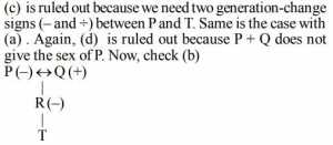 - A + B means B is brother of A; A × B means B is husband of A; A – B means A is mother of B; and A ÷ B means A is father of B. Then which of the following expressions indicates ‘P’ is grandmother of ‘T’?