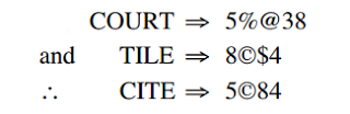 ‘COURT’ is written as ‘5%@38’ and ‘TILE’ is written as ‘8©$4’. How is ‘CITE’