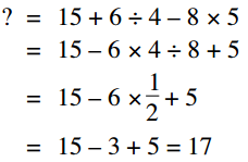 ‘divided by’, then 15 + 6 ÷ 4 – 8 ×