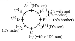 G sits second to the left of D’s son. Only two persons sit between H and A’s brother.