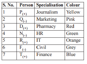 and D are studying different specialisations IT, Civil, HRM, Marketing,