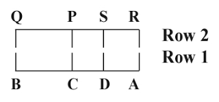 between adjacent persons. In row 1, A, B, C and D are sitting (but not