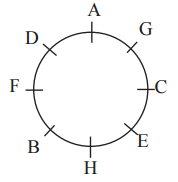 and H are sitting around a circle, facing the centre. A sits fourth to the