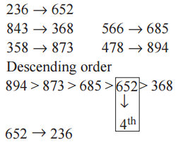 10. If the Middle digit of each of the following numbers is increased by 2 and then the digits of each number are written in reverse order, which number will be the fourth if arranged in descending order?