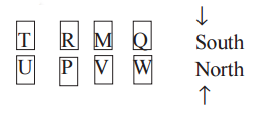 P is between U and V and is facing North. W is opposite to Q who is to the immediate