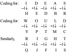 IDEAS is written as HEDBR and WOULD is written as VPTMC. How will RIGHT be written in the same code ?