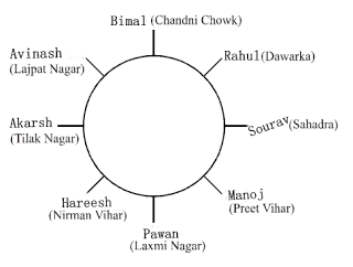 Rahul, Hareesh, Sourav, Manoj, Avinash and Pawan- are sitting around a circular