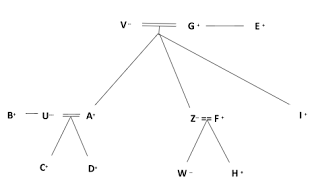 only daughter-in-law of V. G is the father of A and I. H is the son of F. E is
