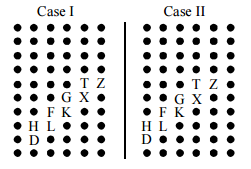 H, F, G, and T are in front of D, L, K and X respectively. At least four persons