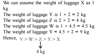 luggages V, W, X, Y and Z, each having a different weights. V weighs twice as