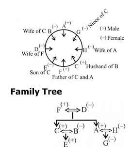 D, the wife of F, sits second to the left of her husband. C and A are offspring