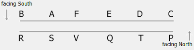 north. In row- 1, A, B, C, D, E and F are seated and all of them are facing