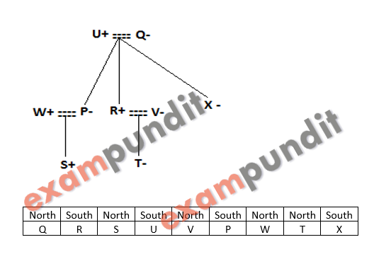 is sitting in a row. Family members are – P, Q, R, S, T, U, V, W and X. Each of