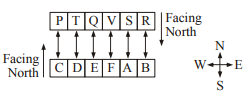 neighbour of T. C does not face V. P is not an immediate neighbour of R.