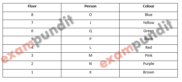 the floors of the persons who like Black and Blue. O doesn’t like Pink. Q likes