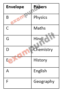 Seven envelopes namely A, B, C, D, E, F and G are kept one