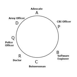 P is neither the neighbour of the Police Officer nor of R. There are two people in between Doctor and CBI Officer(clockwise from CBI). Q is in between the Doctor and D. B is a Software Engineer and also a neighbour of the CBI Officer. A is neither a Doctor nor a CBI Officer. There is one person in between the Business man and the Police Officer. C is neither an Advocate nor a Doctor. The Police Officer and the Army Officer are neighbours of each other. The Advocate is in between the CBI officer and D.