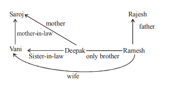 - Saroj is mother-in-law of Vani who is sister-in-law of Deepak. Rajesh is father of Ramesh, the only brother of Deepak. How is Saroj related to Deepak?