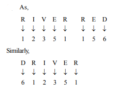 5. In a certain code language, "RIVER" is written as "12351" and "RED" is written as "156". How is "DRIVER" written in that code language?