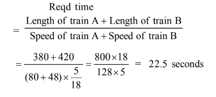 6. A 380-metre-long train running at a speed of 80 kmph will take how much time to cross another 420-metrelong train running in opposite direction at a speed of 48 kmph?