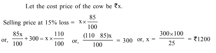 9. Gyan Chand sold a cow at a loss of 15%. Had he sold it for Rs. 300 more he would have earned a profit of 10% instead of loss. Find the cost price of the cow.