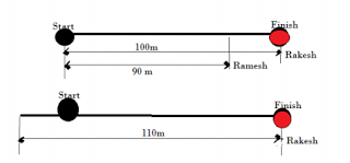 In first case Rakesh travels 100 m and Ramesh travels 90 m in the same time.