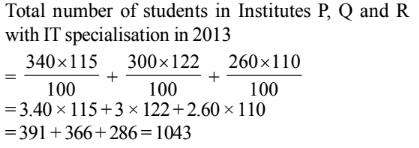 4. If the no. of students in institutes P, Q and R with IT specialisation increased by 15%, 22% and 10% respectively from 2012 to 2013, what was the total no. of students with IT specialisation in the three institutes together in 2013?