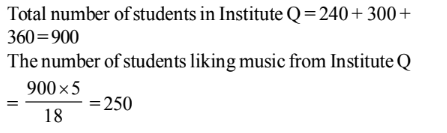 5. If out of the total no. of students for all three specialisations together in Institute Q, the no. of students having liking for Music, Painting and Cricket are in the ratio of 5 : 6 : 7, then what is the no. of students having liking for Music from this institute?