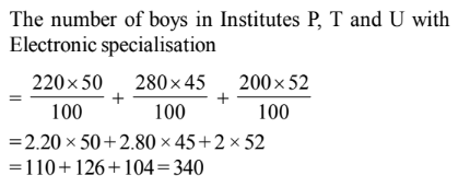 6. In institutes P, T and U the percentage of girls out of total no. of students with Electronics specialisation in the respective institutes is 50%, 55% and 48% respectively, what is the total no. boys in these three institutes with Electronics specialisation?