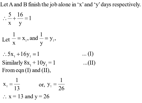 9. A started a work and left after working for 5 days. Then B finished the remaining work in 16 days. Had A left the work after working for 8 days, B would have finished the remaining work in 10 days. In how many days can each of them alone finish the whole work?