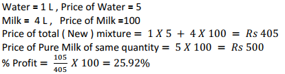 Q10. Raman mixes 25% water to his milk and then he sells the whole mixture at the price of milk. If the cost price of water be 5% of the cost price of milk, what is the net profit % ?