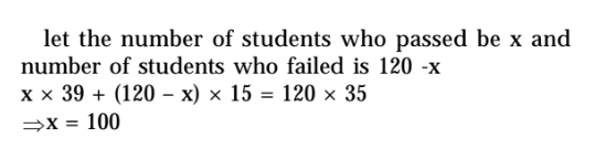 1. Average marks obtained by 120 candidates was 35. If the average marks of passed candidates was 39 and that of failed candidates was 15 the number of candidates who passed the examination is