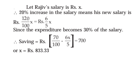 10. Rajiv’s salary has been increased by 20% but his expenditure becomes 30% of the new salary. If he saves Rs. 700, then, what was his salary before increment?