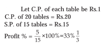 8. Cost price of 20 tables is equal to the selling price of 15 tables, then Profit percent would be