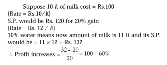 9. A milkman makes a profit of 20% on the sale of milk. If he were to add 10% water to the milk, by what percent would his profit increase?