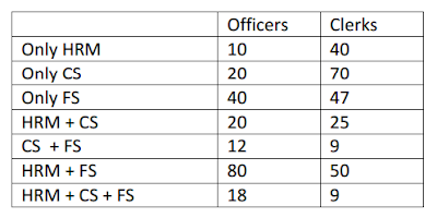 Explanation: Officers taking training in HRM = 10 + 80 + 18 + 20 = 128