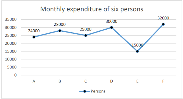 Q 1. If the expenditure of D on food was 20% more than the average expenditure of all the six persons on food, then the average monthly expenditure on food for the given persons is
